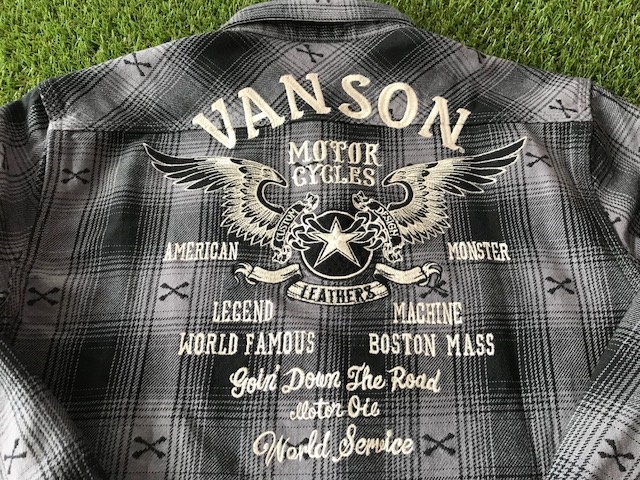 VANSON アイレットワッフル長袖Tシャツ BLK